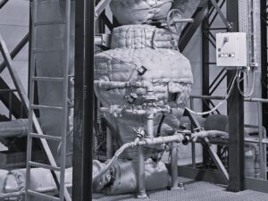 - Abscheidung von Bettasche („Schlacke“ bei Rostfeuerung und Drehrohrofen) aus dem Feuerraum